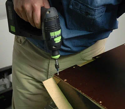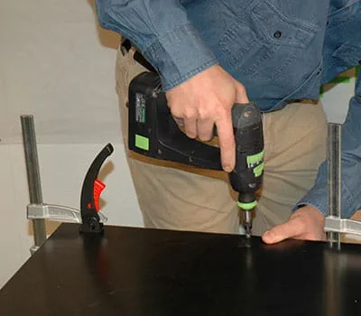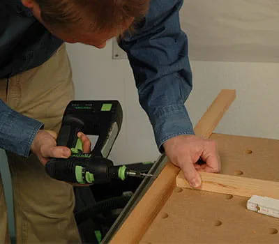 Keď sú rámy spodnej konštrukcie zoskrutkované, položte vnútorné obloženie (pol. 2,7,13). Dosky zafixujte svorkami a vyvŕtajte otvory na skrutky. Priskrutkujte dosky skrutkami Spax (3,5 × 20 mm) na spodnú konštrukciu.