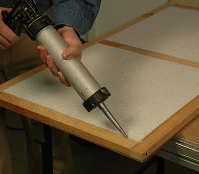 Spodnú konštrukciu s prítlakom rozviňte na obloženie a najprv v strede a potom na oboch ukončovacích lištách zafixujte pomocou svoriek. Aby ste dosiahli dobrý výsledok, použite čo možno najviac svoriek. Ak po uschnutí ešte vidno škáry, vytesnite ich vo vnútri strechy silikónom.
