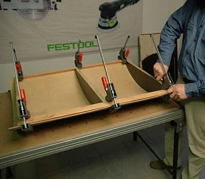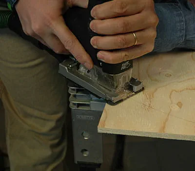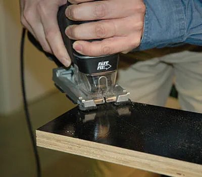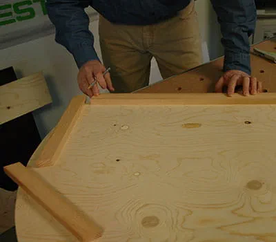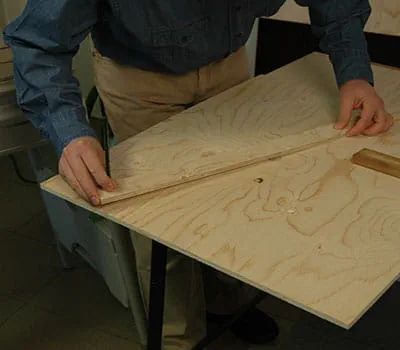 Dajte si narezať preglejkové dosky podľa údajov v zozname materiálov. Ak si chcete dosky narezať sami, najjednoduchšie je položiť na podlahu laty ako podklad a potom dosky narezať pomocou ponornej píly a vodiacej lišty. Ukázalo sa, že je vhodné začať so stavbou oboch bočných stien a