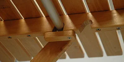 Položte k sebe všetky lišty a zaznačte zvonku vzdialenosť priečnych líšt. Priskrutkujte najprv prvú a poslednú lištu. Potom prikladajte postupne ostatné lišty a medzi ne vkladajte rozperné klátiky, do priečnych líšt vyvŕtajte 4,5 mm otvory a priskrutkujte lišty skrutkami Spax 4 × 60.