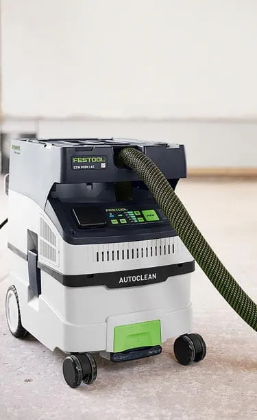 Kompaktné vysávače Festool kombinujú nízku hmotnosť, kompaktné rozmery a množstvo šikovných funkcií: integrovanú technológiu Bluetooth®, hladkú saciu hadicu, intuitívne dotykové ovládanie a jednoduchú výmenu hlavného filtra zvonka.